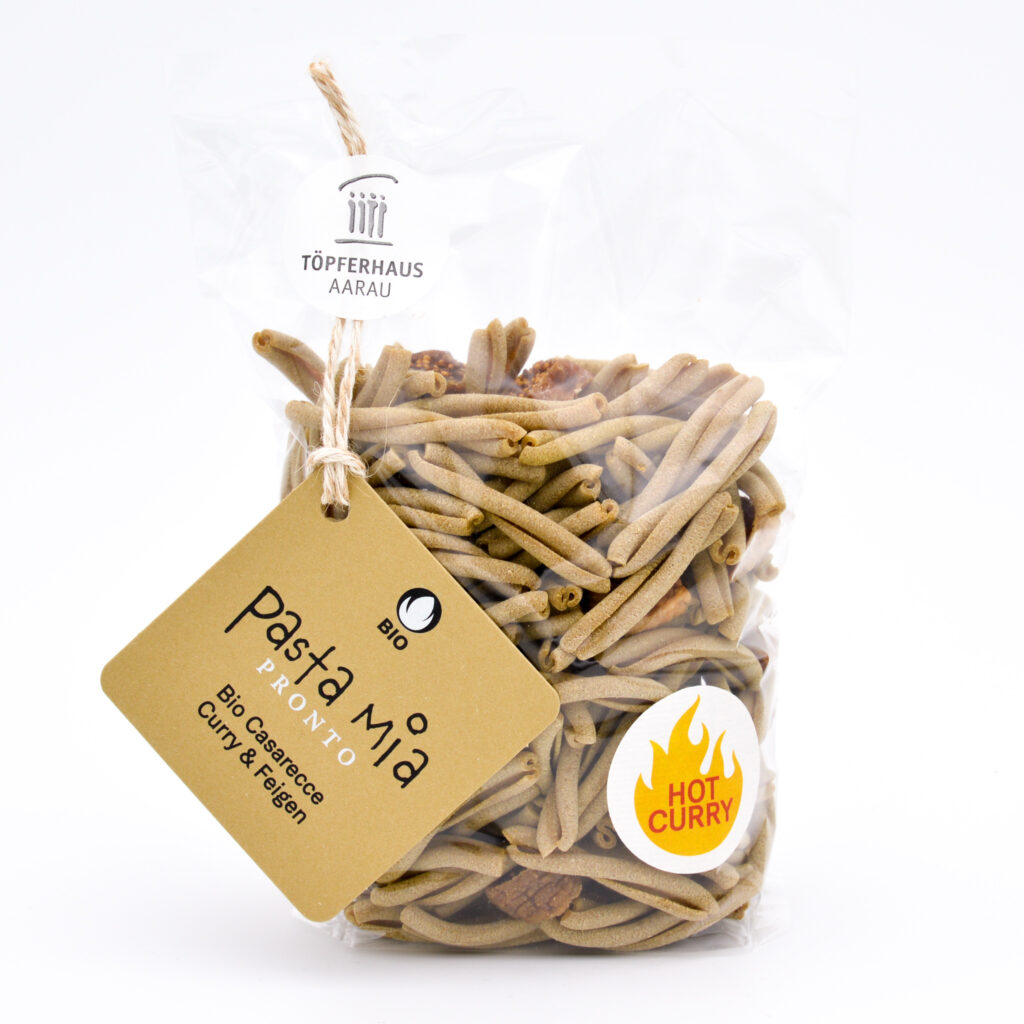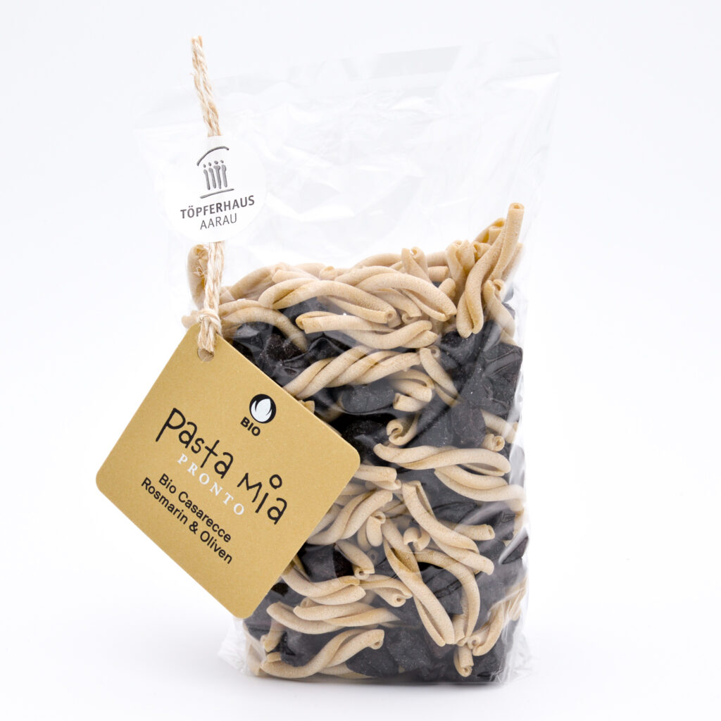 Produziert werden Pasta-Mia-Teigwaren im Töpferhaus seit 2013. Ein Jahr später stehen sie bereits in den Verkaufsregalen von Coop. 2017 folgt die Umstellung auf Bio-Qualität. Mittlerweile verlassen jährlich über 25’000 Pasta-Packungen in unterschiedlichen Formen und Geschmacksrichtungen die Manufaktur.